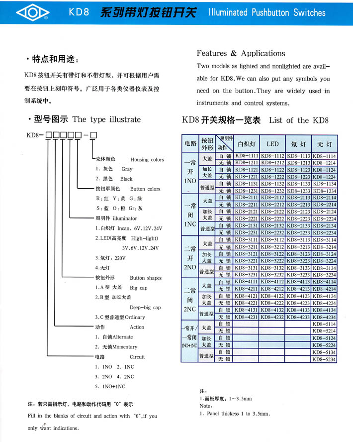 - KD系列帶燈按鈕開關