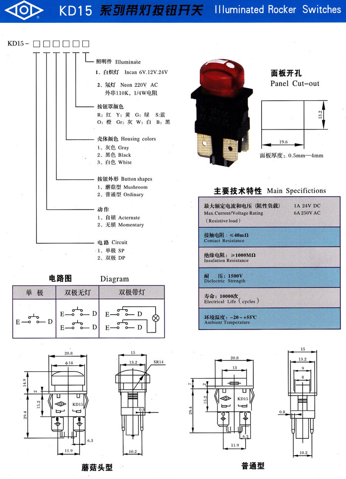 • KD15系列帶燈按鈕開關(guān) 產(chǎn)品型號:KD15系列