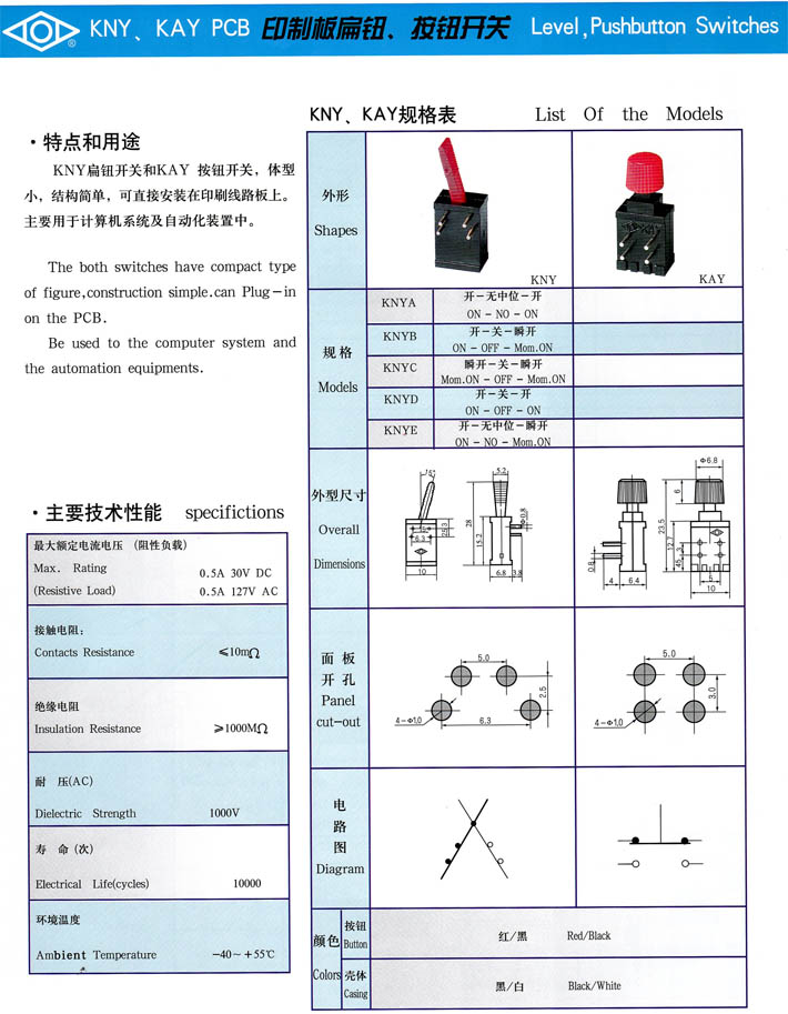 產(chǎn)品型號(hào):KAY印制板按鈕KNY扁鈕開(kāi)關(guān)